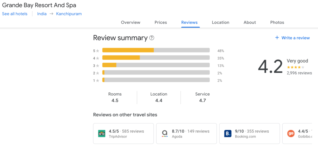 - Chennai airport to Grande Bay Resort And Spa – 53.8 Kms – Avg travel time is 1 h 15 min.